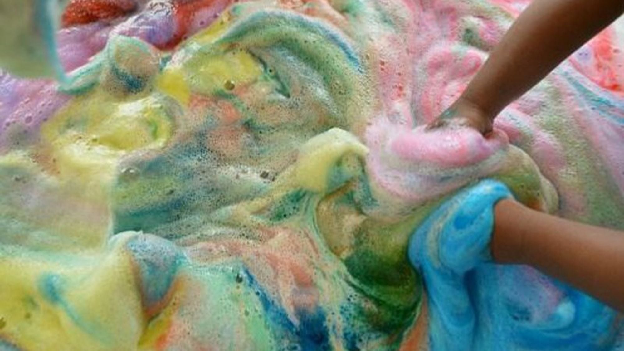 1. Ilık su ile sıvı sabunu karıştırarak 5-6 farklı çorba tabağına bu karışımı dökün.