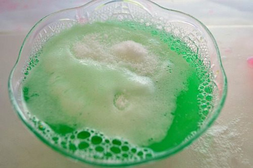 Kabartma tozu bir bazdır. Limon suyu ve sitrik asit ise birer asittir. Bunlar bir araya geldiğinde kimyasal tepkimeye girerler ve etrafa karbondioksit saçarlar. İşte bu karbondioksit salınımı sırasında, sabun tarafından oluşturulan baloncuklar, normalden kat kat fazla şişebilir. Bu tepkime, endotermik bir tepkimedir, yani bu tepkime sırasında ortamdan ısı alınır.