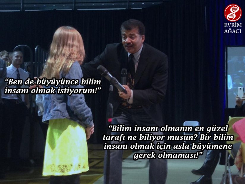 Katıldığı bir etkinlikte ufak bir kız çocuğuyla yaptığı kısa bir diyalogda ünlü astrofizikçi Neil deGrasse Tyson, çocuğa büyüyünce ne olmak istediğini sordu. Kızın cevabı, oldukça güzeldi: "Büyüyünce ben de bir bilim insanı olmak istiyorum." Tyson'ın cevabı ise daha da güzel ve aynı derecede yüreklendirici: