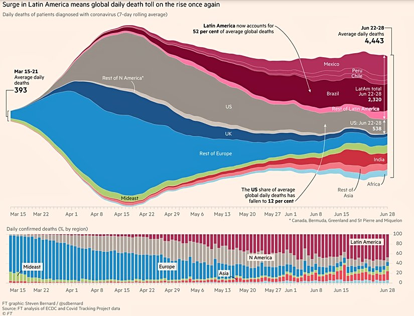 Financial Times'ın hazırladığı veri paneli, üst düzey istatistik uzmanlarının katkıları sayesinde diğer sitelerde yaygın olarak görmediğimiz çok özel analizlere yer veriyor (sonradan bunlar, diğer sitelere de yayılıyor). Bu panel sürekli güncellendiği için siz bu yazıyı okurken yepyeni grafiklerle ve analizlerle donatılmış olabilir; ancak fazladan ölüm analizlerinden tutun da, salgının gidişatının bölgesel analizlerine kadar birçok detayı bu panelden takip edebilirsiniz.