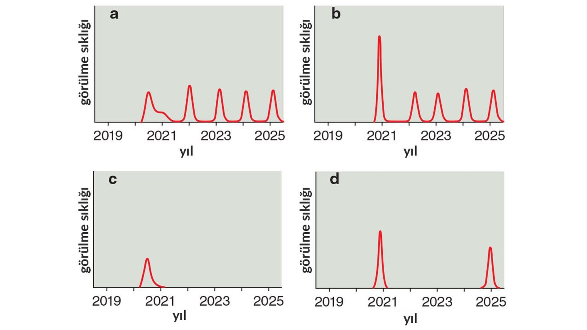 Bu artçı dalgaların yaşanıp yaşanmayacağını ve yaşanacaksa da ne sıklıkla yaşanacağını 2 kritik faktör belirliyor: daha sıcak aylarda virüsün bulaşma dinamikleri ve koronavirüsü atlatan hastalarda bağışıklığın ne kadar sürdüğü. Hangi senaryonun gerçekleşeceğiyle ilgili olarak, Kissler şöyle diyor: