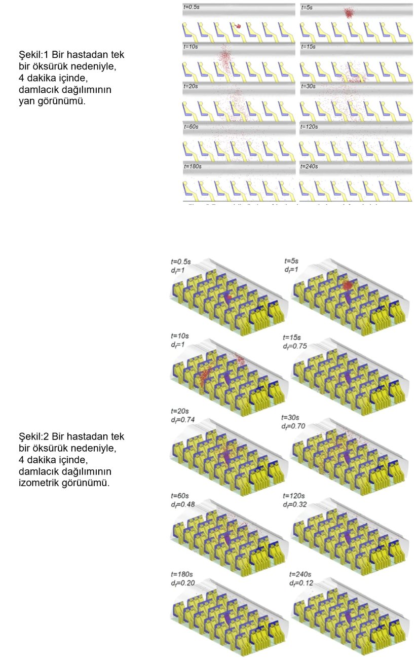 Nozullardan yayılan yüksek hızlı havanın, virüs taşıyan bir yolcudan yayılabilecek damlacıkları etrafa dağıtması olası görülmektedir.