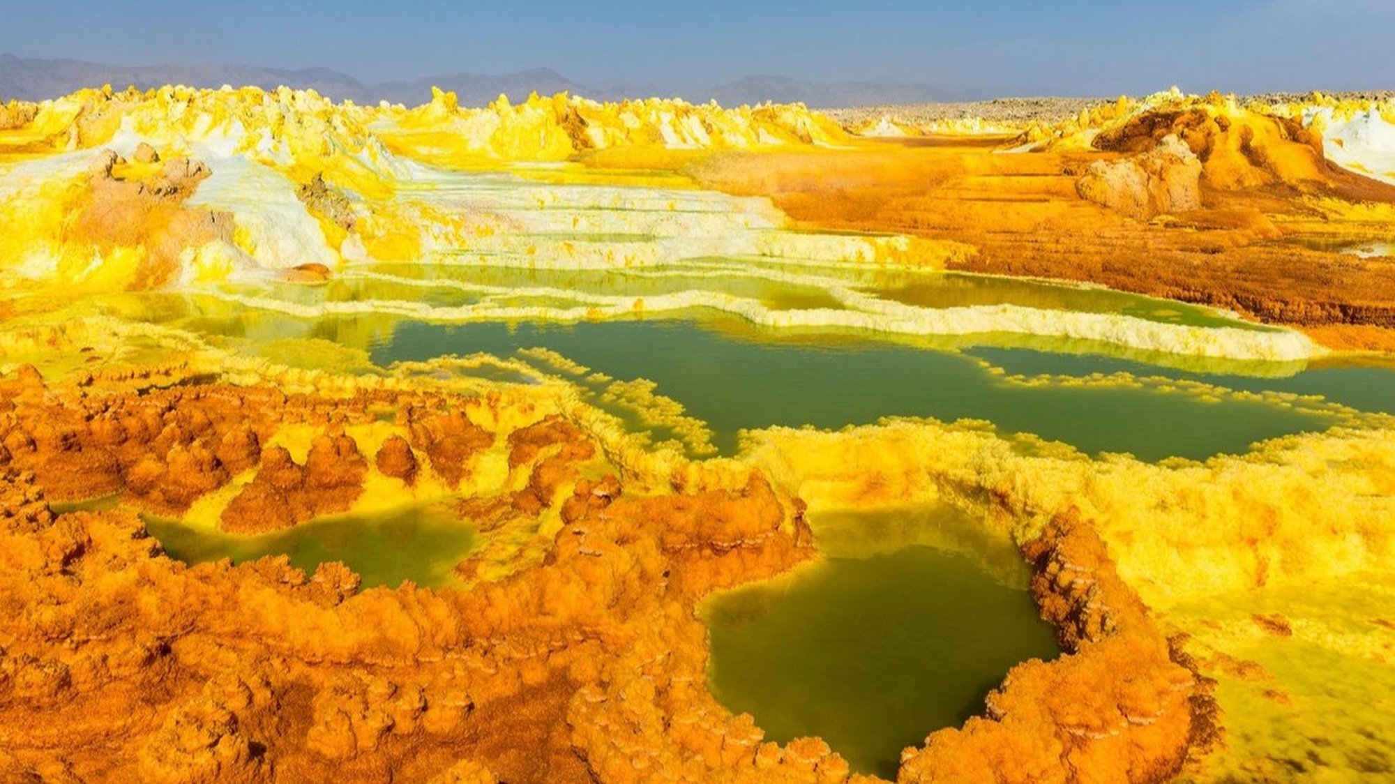 Günümüzde hala devam eden jeolojik süreçlerle dinamik bir yapıya sahip olan Dallol Yanardağı, Danakil Çöküntüsü'nün kuzeyinde yer alıyor. Bu yanardağla bağlantılı olan hidrotermal alanlar ise tuzlu veya asidik su kaynakları, fümaroller ve sıcak su havuzları bulundurması yönünden oldukça zengin. Bölgede bulunan gayzerler ve sıcak su kaynakları, hidrojen sülfür (H2S), sülfat (SO4) ve hidrojen klorürün (HCl) baskın olduğu ve az miktarda da karbondioksit (CO2) içeren buhar ve gazlar açığa çıkarıyor.