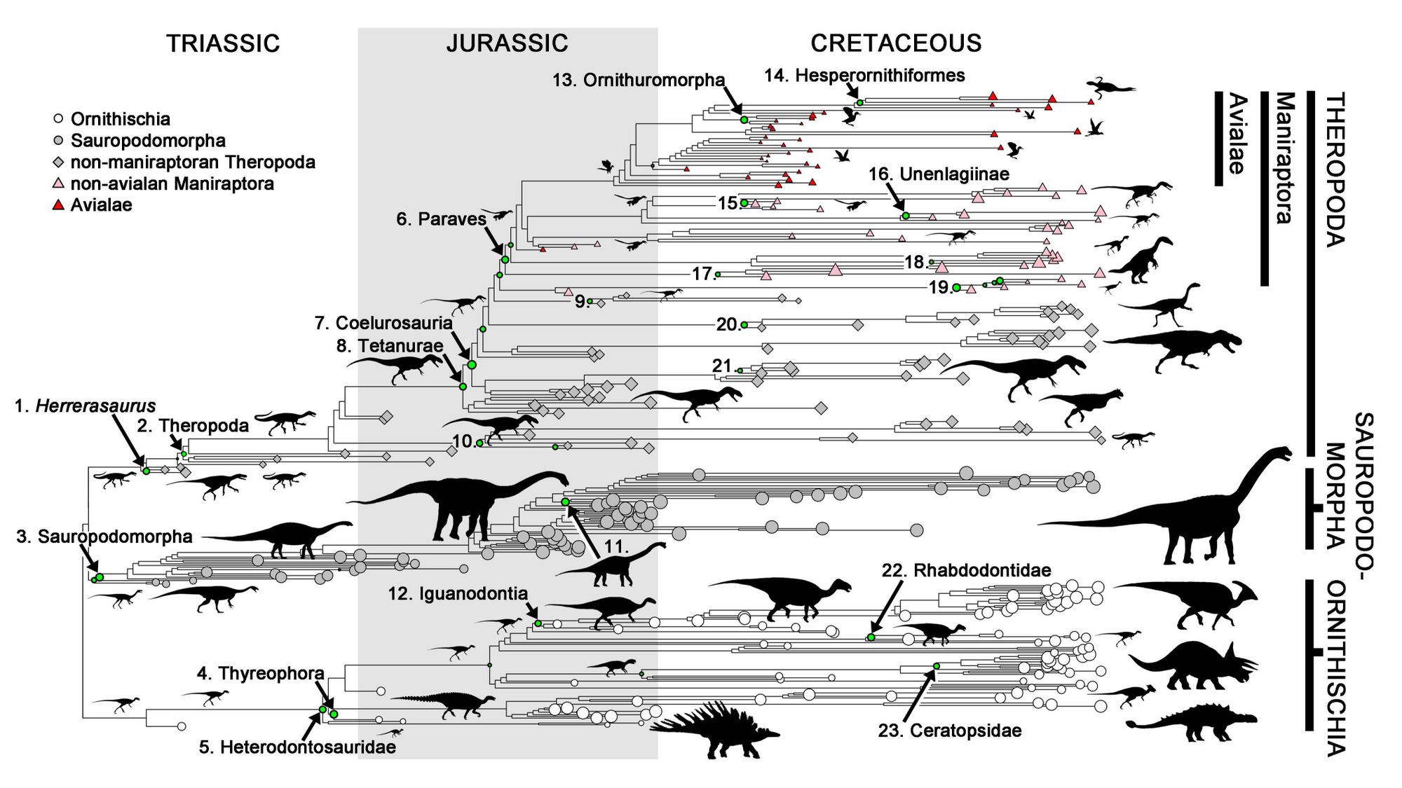 Araştırmacılar, virüslerin evriminin analizi için geliştirilen gelişmiş analiz aletleri kullanarak 1.500'den fazla dinozor vücudu özelliğini ve son derece iyi tanınan 120 farklı teropod ve erken kuş-dinozor örneğini incelediler. Bu analiz sonucunda detaylı bir soy ağacı çıkarmayı başardılar ve teropodların kuş torunlarına nasıl evrimleştiğini gösterdiler. Analiz, dinozorların soy ağacındaki dallarda evrimleşen adaptasyonları ve değişen vücut büyüklüğünü takip etmekteydi.