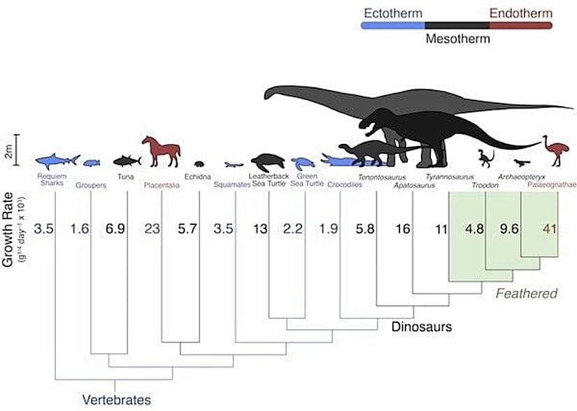 Yazıda belirtildiği gibi dinozorların da sürüngen ataları gibi soğukkanlı olduğu düşünülmekteydi. Kuşlar, dinozorların evriminin erken safhalarında ve ilerleyen dönemlerinde dinozorlardan evrimleşmiş bir canlı grubudur. Modern kuşlar sıcakkanlıdır. Dolayısıyla soğukkanlılık ile sıcakkanlılık arasında bir geçiş olması gerekmektedir. Bu geçiş illa devasa bir grupta olmak zorunda değildir, bir veya birkaç canlı türü veya cinsinde de kendini gösterebilir.