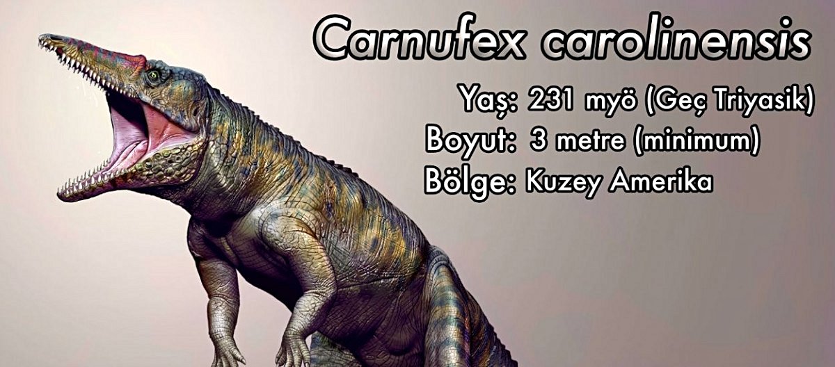 Henüz dinozorlar dünyaya hükmetmeye başlamadan önce timsah benzeri dev sürüngenler besin zincirinin tepelerindeydi (apeks predator). Triyasik Dönem'in yırtıcılar genelde 3-4 metrelik Phytosaur ve Postosuchus gibi timsah-benzeri sürüngenlerdi. Bunlara ek olarak Kuzey Amerika'da 3 metrelik Carnufex carolinensis adında yeni bir tür keşfedildi. İsminin anlamı "Karolina Kasabı"dır. Bu ismin verilmesinin sebebi Kuzey Karolina'da keşfedilmesi ve kafatası morfolojisinin bıçak benzeri olmasından geliyor. Diğer timsah-benzeri sürüngen ataların aksine Carnuferix arka bacakları üzerinde yürüyebiliyordu. Kafatasının anatomisine bakıldığında çoğunlukla zırhlı kertenkeleleri, erken theropodları ve küçük memelileri avladığı görülüyor. Keşfedilen türün daha gelişimini tamamlamadığı düşünülüyor, bu yüzden tahmin edildiğinden daha da büyük olabileceği düşünülüyor.