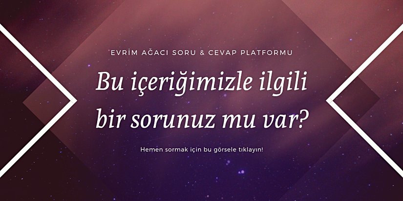 İçerik Kullanım İzinleri: Evrim Ağacı'ndaki yazılı içerikler orijinallerine hiçbir şekilde dokunulmadığı müddetçe izin alınmaksızın paylaşılabilir, kopyalanabilir, yapıştırılabilir, çoğaltılabilir, basılabilir, dağıtılabilir, yayılabilir, alıntılanabilir. Ancak bu içeriklerin hiçbiri izin alınmaksızın değiştirilemez ve değiştirilmiş halleri Evrim Ağacı'na aitmiş gibi sunulamaz. Benzer şekilde, içeriklerin hiçbiri, söz konusu içeriğin açıkça belirtilmiş yazarlarından ve Evrim Ağacı'ndan başkasına aitmiş gibi sunulamaz. Bu sayfa izin alınmaksızın düzenlenemez, Evrim Ağacı logosu, yazar/editör bilgileri ve içeriğin diğer kısımları izin alınmaksızın değiştirilemez veya kaldırılamaz.
