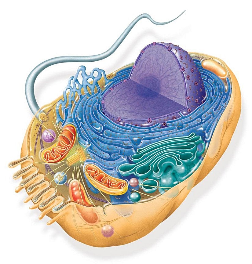 Son olarak, hücre animasyonlarına gelelim... Bir ders kitabını açacak veya bir hücre animasyonunu izleyecek olursanız, hücre içerisindeki her şeyin muntazam, kusursuz, düzenli olduğunu sanabilirsiniz. Bu, Dünya'nın en çok okunan biyoloji ders kitabı olan Campbell Biyoloji kitabından alınmış bir hücre fotoğrafı: