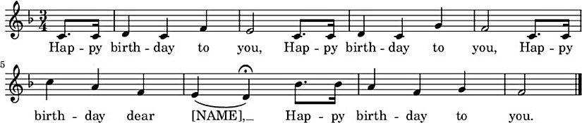 Her ne kadar bu metinde ilahilerden mısralar söylenmesinden söz edilse de, bu gelenek Amerikan toplumunda hiçbir zaman yer etmemiştir. Bunun yerine, mumlar yakıldıktan sonra bir şarkının söylenmesi geleneğin bir parçası haline gelmiştir: Mutlu yıllar sana!