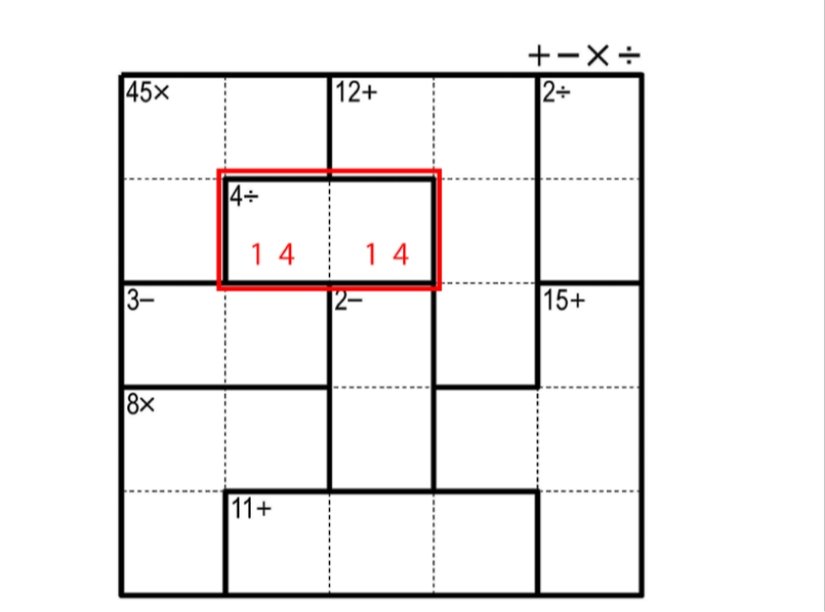 - 2. Adım: Bulmacayı çözmek için köşelerde yer alan işlemleri yapmak zorundayız. Örneğin “4÷” etiketli iki kafesten oluşan şemada bir kafeste dört sayısı varsa o kafesteki dört sayının bölümünün 4 yapması gerekmektedir. Yani diğer kafesteki sayı 1 olmalıdır. Kendoku temelde toplama (+), çıkarma (-), çarpma (×) ve bölme (÷) içerir. Sadece bir kutulu ve matematiksel sembolü (1) olmayan kafesler, sayıyı kutuya tek başına yerleştirdiğiniz anlamına gelir. Kutuda 1 yazıyorsa kutuya 1 koymalısınız.
