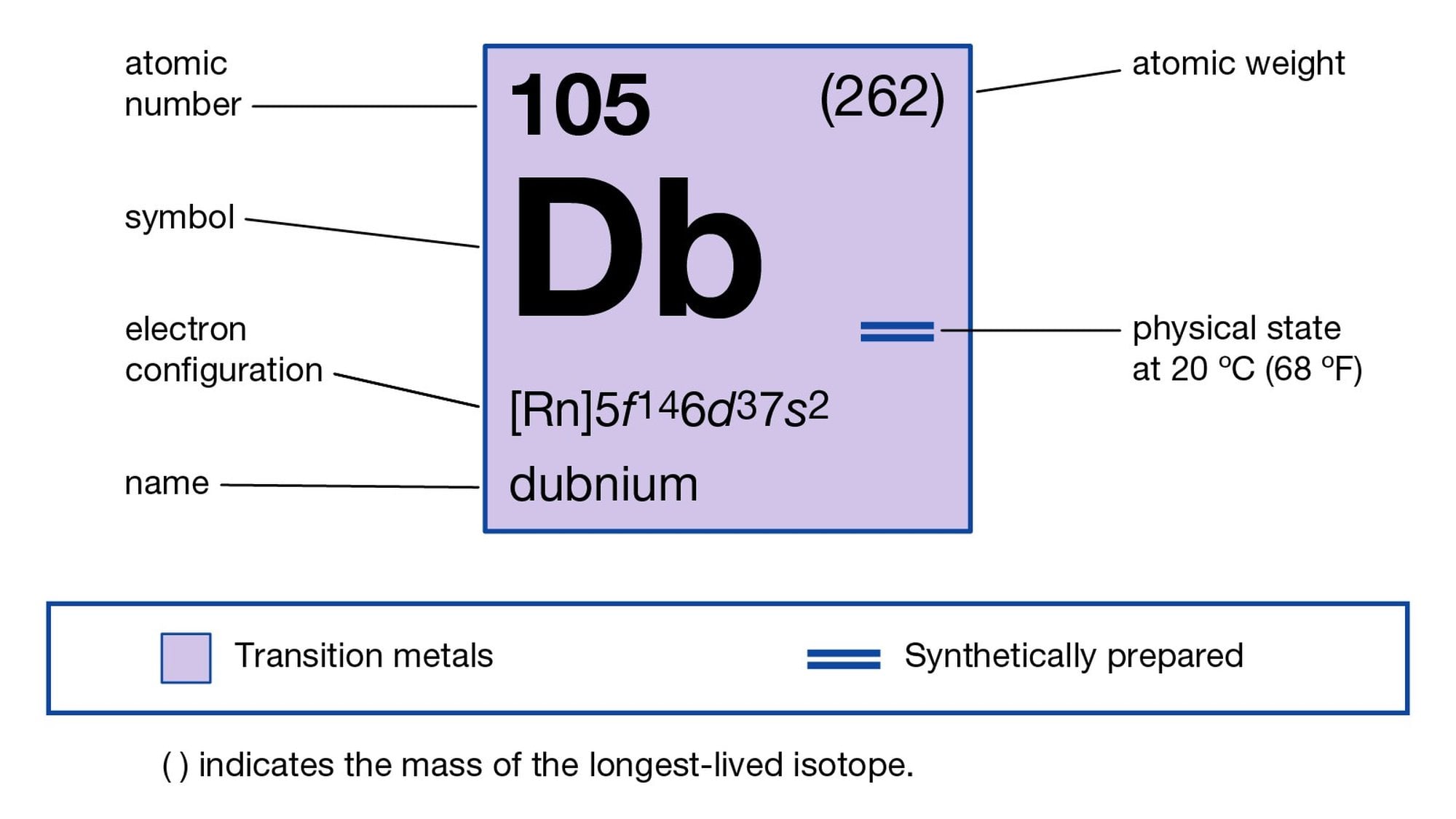 - ThoughtCo. Overview Of Dubnium Facts And Physical Properties. Alındığı Tarih: 20 Şubat 2021. Alındığı Yer: ThoughtCo | Arşiv Bağlantısı