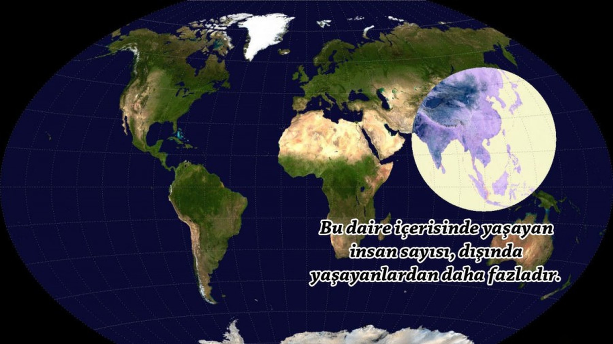 Dünya nüfusunun 4.4 milyarı, Asya'da öbeklenmiştir. Afrika'da 1.1 milyar, Avrupa'da 740.7 milyon, Güney Amerika'da 618.1 milyon, Kuzey Amerika'da 353.4 milyon insan yaşamaktadır. Asya'daki popülasyonun 1.4 milyarı Çin'de, 1.3 milyarı Hindistan'da, 251 milyonu Endonezya'da, 127 milyonu Japonya'da, 100 milyonu Filipinler'de, 66.4 milyonu Tayland'da yaşamaktadır. Bu açıdan bakıldığında, görselde verdiğimiz daire içerisinde kabaca 3.5-4 milyar insan yaşamaktadır.