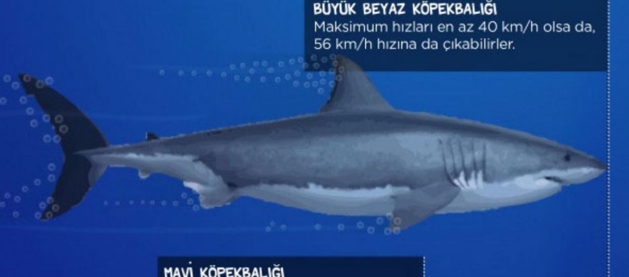 Öte yandan köpek balıklarında tespit edilen en yüksek hızlar şöyledir: