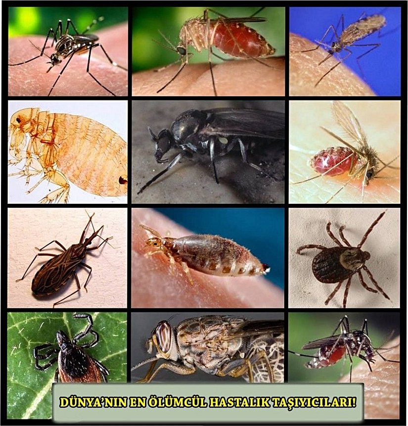 Aşağıdaki fotoğrafta gördüğünüz hayvanlar, insanlık tarihinin gördüğü en ölümcül hastalık taşıyıcı hayvanlarını göstermektedir. Aslında hiçbiri doğrudan hastalığa neden olmazlar; ancak hepsi ölümcül hastalıkların ana taşıyıcısıdırlar. Öyle ki, insan da dahil olmak üzere bildiğiniz diğer hiçbir hayvan, bu canlıların taşıdığı hastalıkların neden olduğundan daha fazla insanın ölümüne neden olmamıştır. Bildiğimiz tüm savaşların ve katliamların toplamı bile, bu hayvanların taşıdığı hastalıkların toplamda öldürdüğü insanlardan daha fazla insanın canını almamıştır ve muhtemelen hiçbir zaman da alamayacaktır.