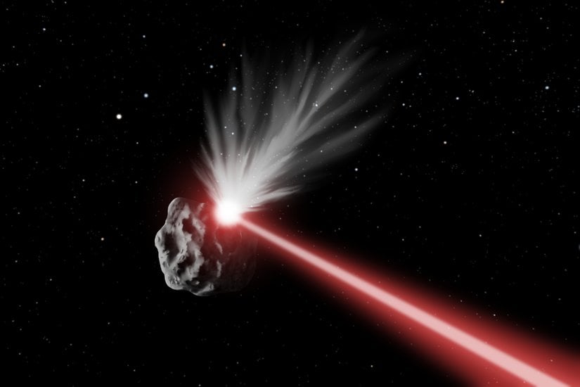Bilimkurgu filmlerinden fırlamış gibi görünse de lazer kullanarak asteroid saptırma fikri bilim insanlarının ilgisini çekmektedir. Bu yöntemde, güçlü lazer ışınları asteroide odaklanarak yüzeyindeki malzemeyi buharlaştırmak (ablasyon) amaçlanır. Yüzey malzemesi aniden gaz haline gelip püskürürken, tıpkı bir roketin egzozu gibi tepki kuvveti oluşturur ve asteroidi aksi yönde iter. Gerçekten de "Laser Bees" adı verilen bir projede, birden fazla küçük uzay aracının koordineli lazer atışlarıyla bir asteroidin yüzeyini sürekli buharlaştırarak yörüngesini değiştirebileceği ortaya konmuştur.