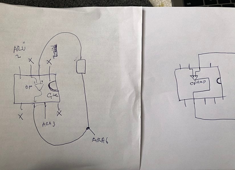 Yani Dyson Lin'in yaptığı şu: Devrenin opamp'ın + girdi ucuna düşen gerilimi ölçmek. Kurduğu devrenin yaptığı tek iş bu. Ancak "ufacık" bir sorun var: Dyson Lin tarafından üretilen bu cihazda, sinyal girişinin olması gereken eleman bacağına hiçbir şey bağlı değil.
