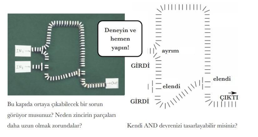 - VE (AND), VEYA (OR) ve DIŞLAMALI VEYA (XOR) kapıları gibi temel mantık kapıları, girdilerin durumuna göre farklı sinyaller üretir ve domino taşlarıyla bu kapıların işleyişi basitçe modellenebilir.