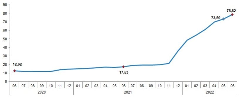 Yukarıdaki %78.62 oranındaki enflasyonun, TÜFE hesabına dahil edilen ürünlere göre dağılımı aşağıdaki gibidir: