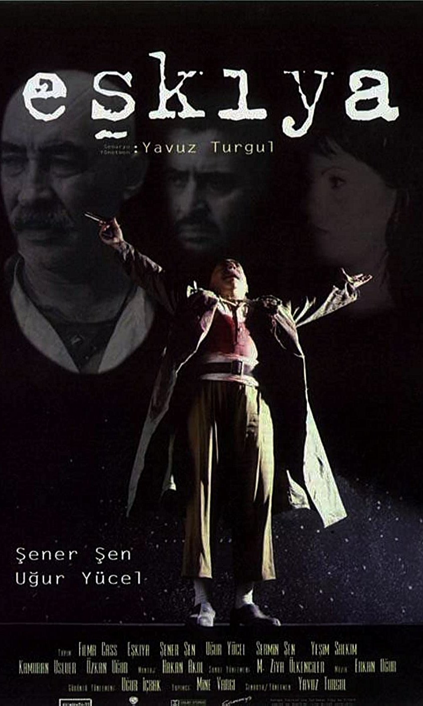 Yavuz Turgul'un senaryosunu yazıp yönetmenliğini üstlendiği Türkiye sinemasının unutulmaz filmlerinden Eşkıya'nın başrollerinde Şener Şen, Uğur Yücel, Şermin Hürmeriç ve Yeşim Salkım bulunuyor.