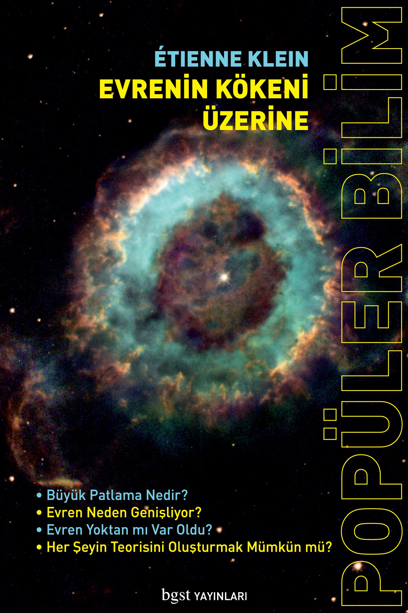Fizikçi ve bilim felsefecisi Étienne Klein “Evrenin Kökeni” meselesini iki farklı bağlamda inceliyor. Popüler bilim düzeyinde, bildiğimiz evrenin oluşumuna dair modern fizikteki gelişmeleri anlatıyor. Büyük patlama teorilerini temel eğitim almış her okurun anlayabileceği düzeyde açıklıyor. Modern fiziğin büyük rüyasına, Einstein’ın genel görelilik teorisi ile kuantum teorisini birleştirme çabalarına yer veriyor.