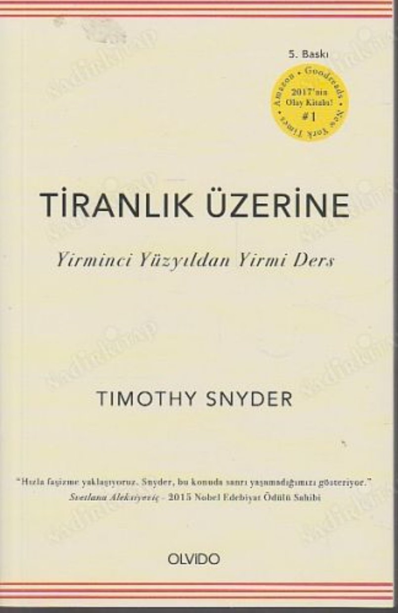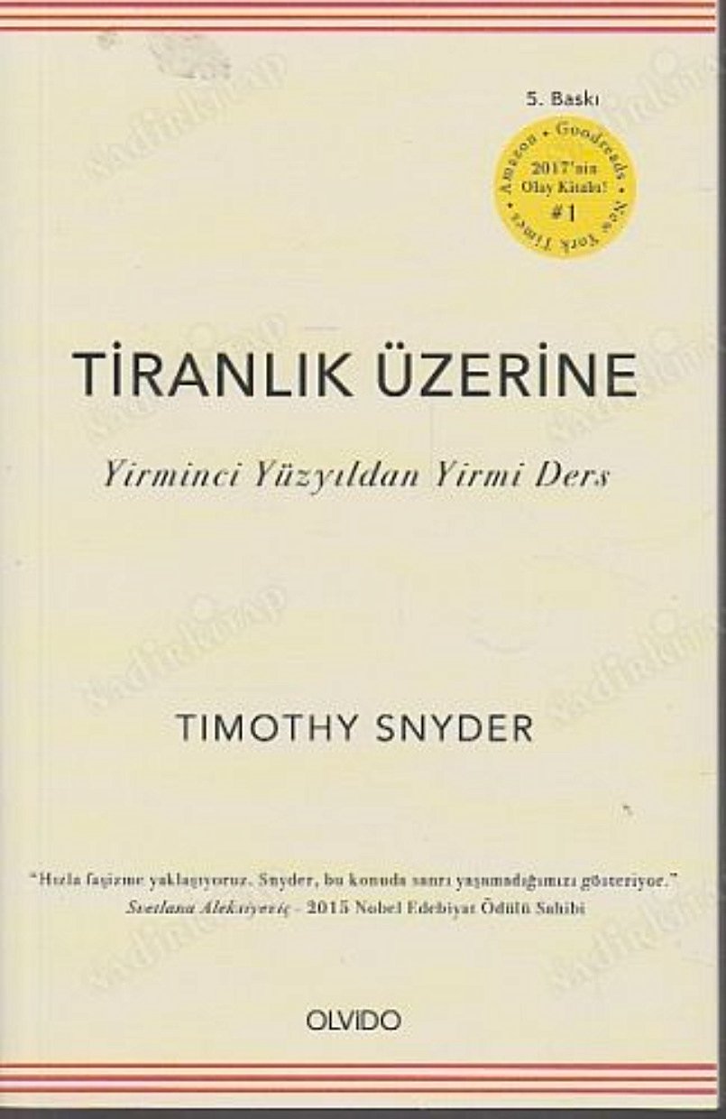 Bu kitabı, böyle bir gerçekten hareket ederek kaleme alan Yale Üniversitesi Tarih Profesörü Timothy Snyder, son yıllardaki küresel politik gelişmeleri ve dönüşümleri tarihsel perspektiften ele alıyor ve bizleri yirminci yüzyılın başında yapılan hatalara düşmememiz konusunda net bir şekilde uyarıyor. Çünkü “demokrasilerin nasıl kırılgan olup kötü bir niyetle istismar edilebildiğini daha önce görmüştük ve bugün aynı taktikler yine sahneye çıkmaya başladı.”