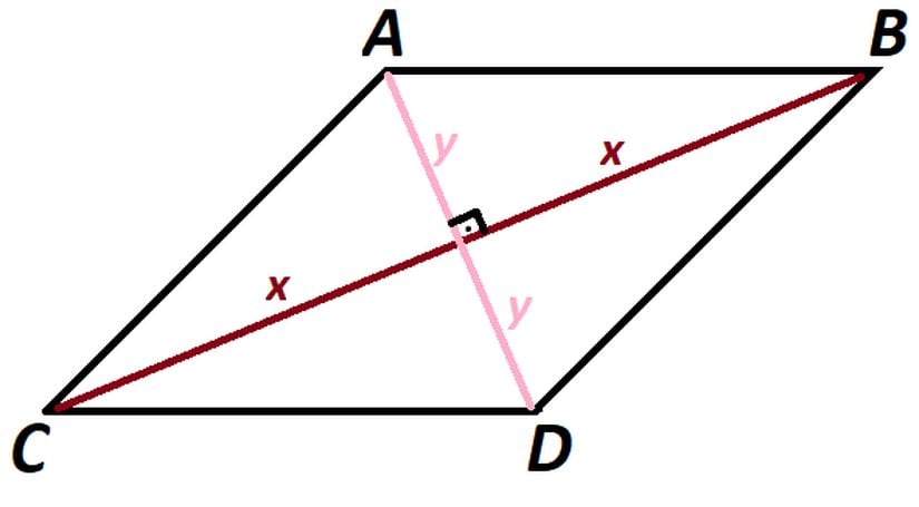 Köşegenlerin uzunluklarını biliyorsak xx ve yy bu uzunlukların yarısına eşit olacaktır. Pisagor teoreminin bize söylediğine göre bu durumda şeklin bir kenarının uzunluğunu y²+x²y² + x²eşitliğini kullanarak buluruz. Sonra da bulduğumuz sayıyı 4 ile çarpmak yeterli olacaktır. Ya da bu noktada yine üçgenin alanından faydalandığımız yöntemi de kullanabiliriz.