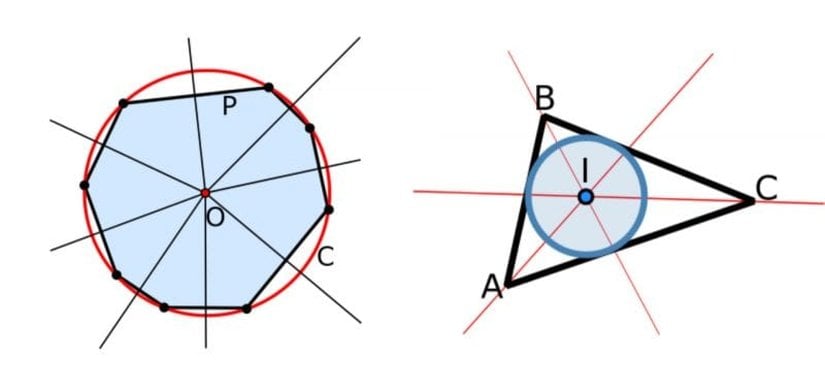 Geometride "çevrel çember" ve "iç teğet çember" diye adlandırılan iki terim bulunur. Çevrel çember, bir çokgeni çevreleyen ve tüm köşelerini üzerinde bulunduran çembere denir. İç teğet çember ise bir çokgenin içinde bulunan ve çokgenin tüm kenarlarına teğet olan çemberin adıdır. Tüm üçgenlerin, düzgün çokgenlerin (tüm kenarları ve açıları birbirine eşit olan) ve bazı düzgün olmayan çokgenlerin çevrel çemberi ve iç teğet çemberi vardır.
