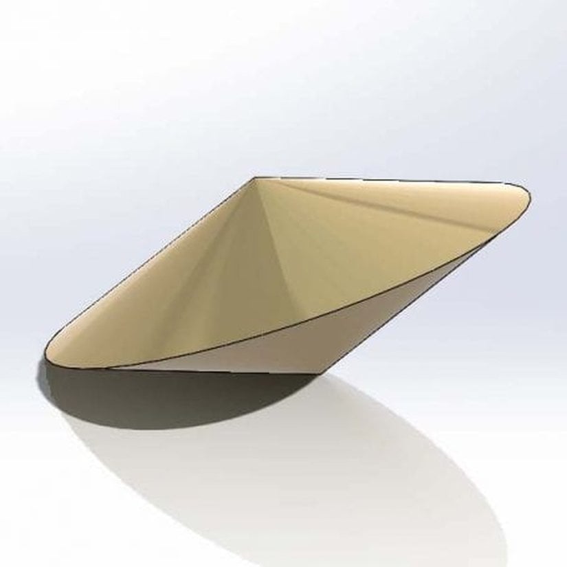 Bu dörtgenin iki karşı kenarının orta noktalarını birleştiren doğru parçası etrafında döndürdüğümüzde ise iki ucu da içbükey koniler olan silindirik bir yüzey elde ederiz. Bunun kesit görünümü aşağıdaki gibi olur.