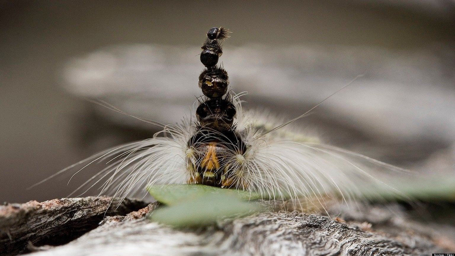 - Bu tırtıllar, büyürken attıkları eski kafalarını kafa üstünde şapka gibi taşır ve şapkanın uzunluğu bireyin yaşını gösterir.