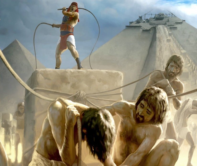 Mısır'daki piramitlerin köleler tarafından inşa edildiği fikri M.Ö. 5. yüzyılda bunu rapor eden Yunan tarihçisi Herodotus'tan beri etrafa yayılmıştır. Piramitleri inşa edenlerin kalıntıları Giza'daki piramitlerin yanında bulunan mezarlarda bulununca bunun doğru olmadığı anlaşılmıştır. Yüce Firavunların yakınında gömülmek en büyük onur idi ve böyle bir şey hiçbir zaman köleler için yapılmamıştır. Buna ek olarak, Giza'da ortaya çıkarılan büyük sayıda sığır kemikleri -Eski Mısır'da değerli bir yiyecekti- inşaat işçilerin temel gıdasıydı. Piramitleri inşa edenler Hollywood'un ya da İncil'in belirttiği gibi köleler değil, besbelli tecrübeli ustalar idi.
