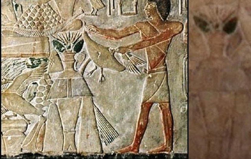 Ne yazık ki bazıları Mısırlıların uzaylılarla iletişim kurduğuna halen inanmaktadırlar. Piramitlerin insan-üstü bir başarı olduğunu ve bazı duvar resimlerin uzaylıları gösterdiğini ileri sürerler. Bu basitçe Eski Mısırlıların mirasına hakaret etmektir. Giza'daki Büyük Piramit matematiksel açıdan muhteşem olsa da, inşaatı zamanında yaşayan zeki astronomların, bilim insanların ve mimarların ötesine değildi. Ve Büyük Piramit yaklaşık olarak 4000 senedir en yüksek yapı olarak kaldığı halde bu onun Mısırlıların uzaylılarla dost olduğu anlamına gelmemektedir; sadece hiçbir kültürün Mısırlılarla anıt inşa etmekle ta 19.yüzyıla kadar yarışmadığı anlamına gelmektedir. Alttaki görselde yer alan duvar resmi de bir uzaylı değil bir vazodur.