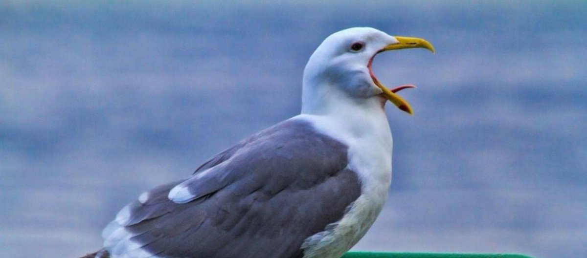 Fotoğrafta, New York'taki bir feribota konan bir martının esneme anı yakalanmış. Fotoğraf Nisan 2014'te John Gaythorpe tarafından çekildi.