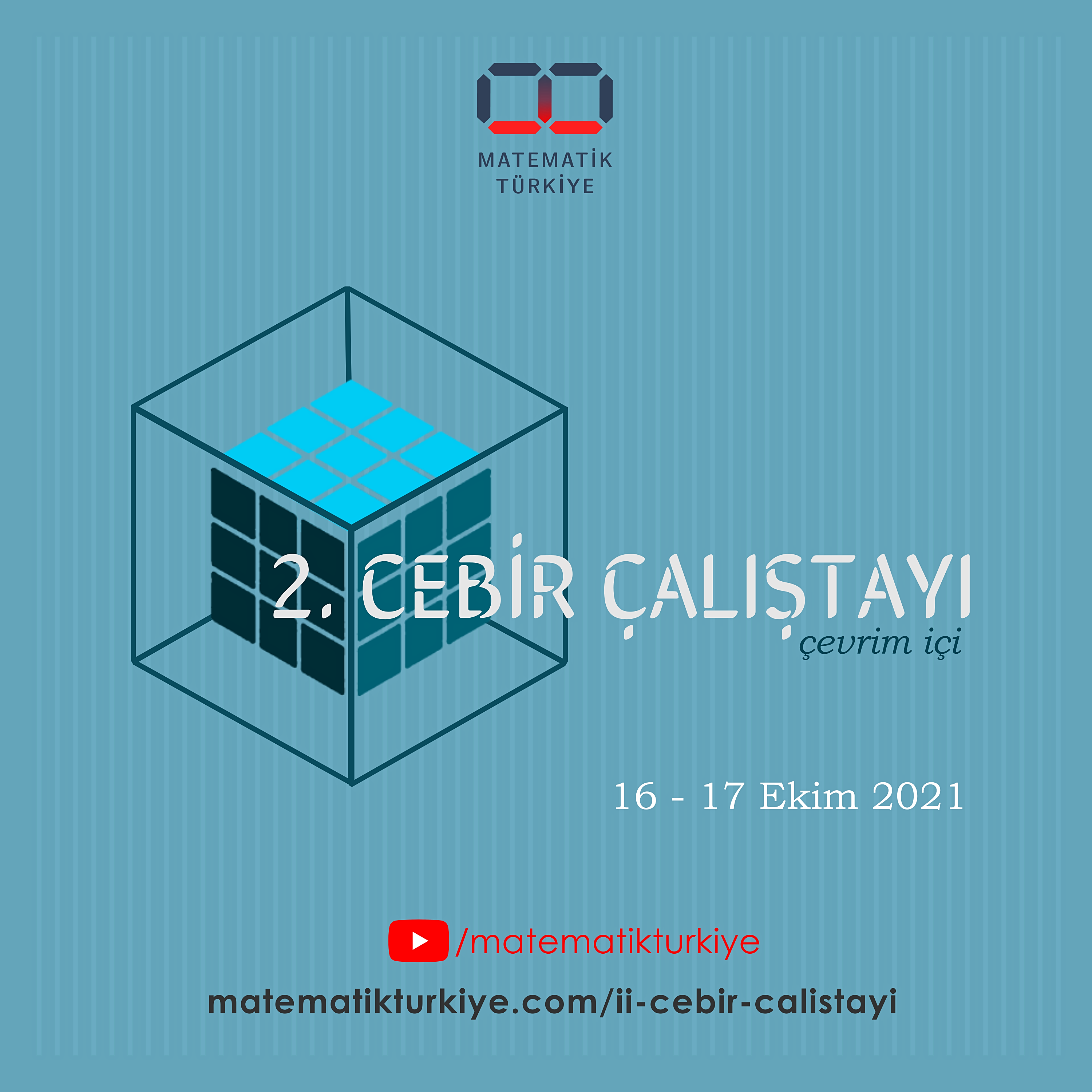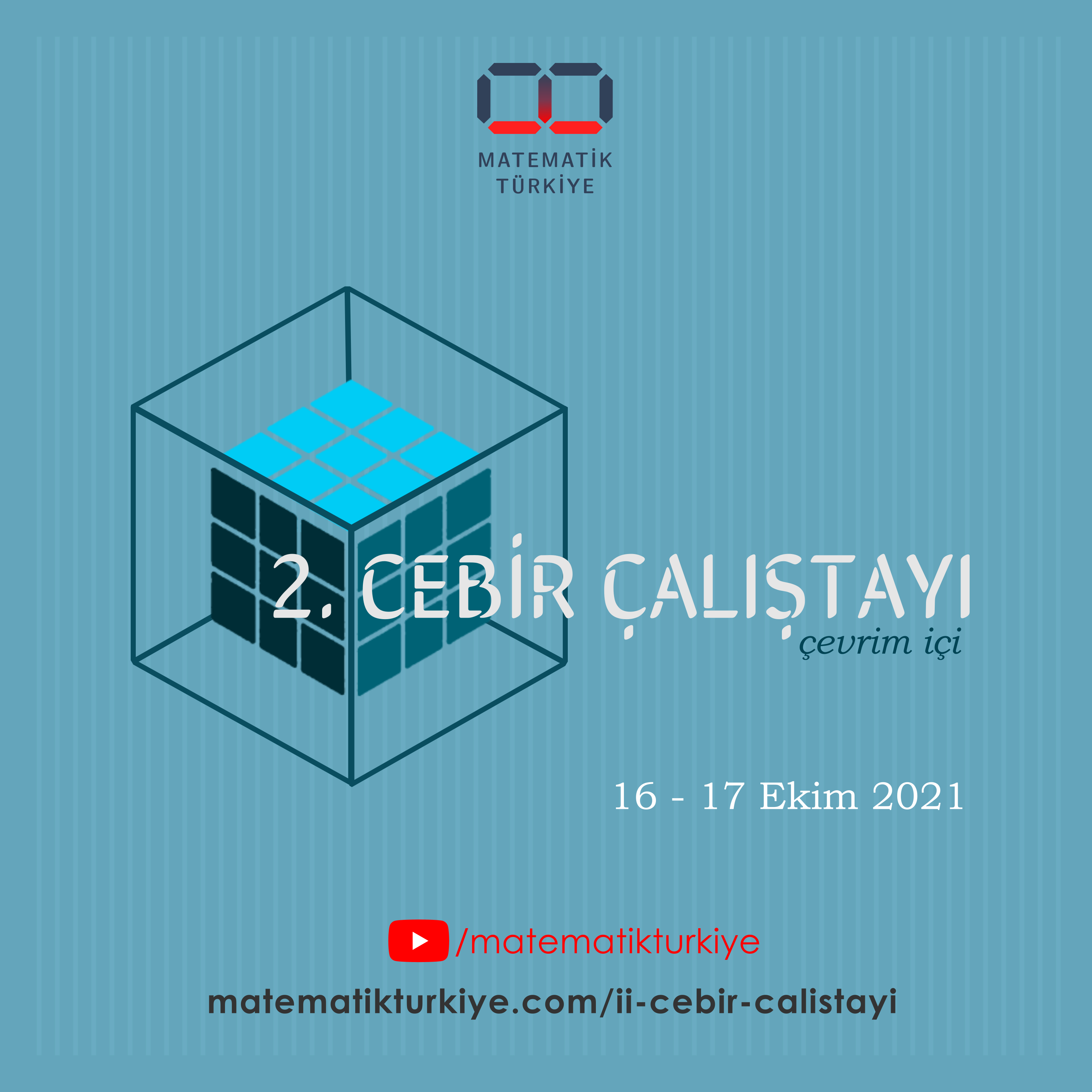 Cebir Çalıştayı, Türkiye Matematik Kulübü tarafından düzenlenen akademik odaklı çalıştaylardan biridir. Özellikle cebir konusuna meraklı insanları buluşturmak ve bu konuda tartışabilecekleri bir ortam oluşturmayı amaçlamakla birlikte bu konuya meraklı kişilerin konuşma vermesini teşvik etmek istiyoruz. 2. Cebir Çalıştayı çevrim içi olarak 16-17 Ekim 2021 tarihleri arasında gerçekleşecektir. Etkinliğin gerçekleşeceği tarihler arasında katılımcılar, konuşmaları Zoom veya YouTube üzerinden canlı olarak takip edip sorular sorabilirler. Öte yandan etkinliği daha aktif bir şekilde geçirmek için kurmuş olduğumuz Discord sunucusunda, katılımcıların birbirleriyle konular hakkında konuşabilmelerini sağlamak istiyoruz.