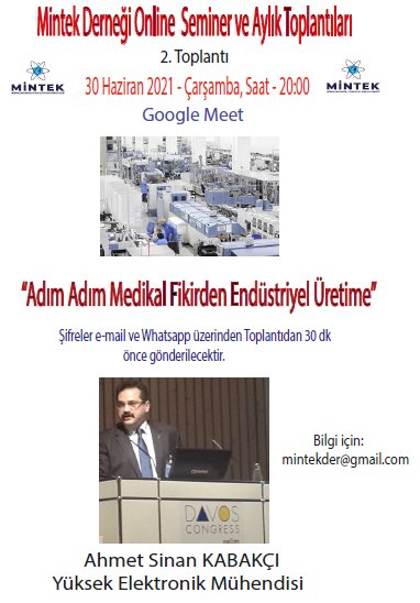 Medikal İnovasyon, Teknoloji ve Kuantum (MİNTEK) Derneği olarak ONLİNE Aylık Sminer ve Toplantılarımız çerçevesinde 2. Seminerimizi 30 Haziran Saat 20:00'de Google Meet üzerinden yapacağız. Katılmak isteyenler [email protected] adresine bildirim gönderirlerse katılım şifreleri kendilerine gönderilecektir.