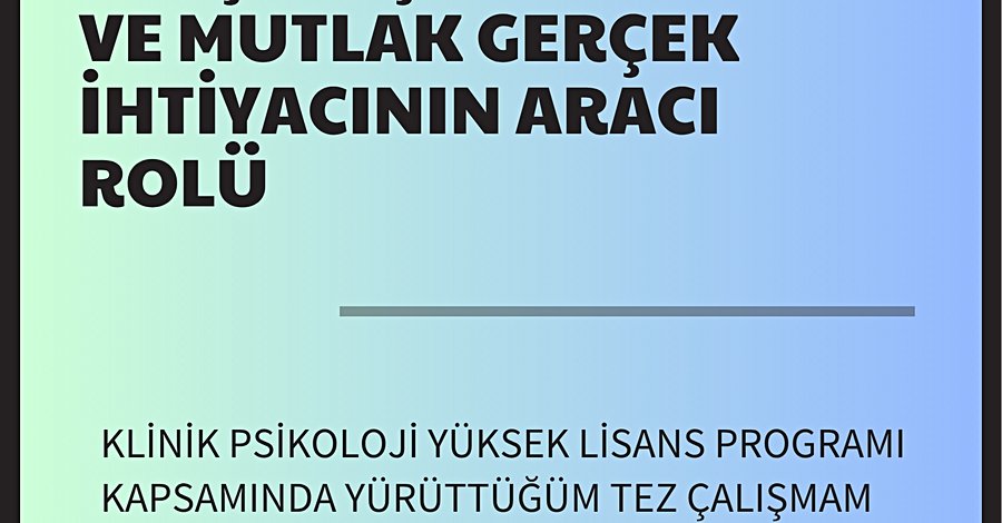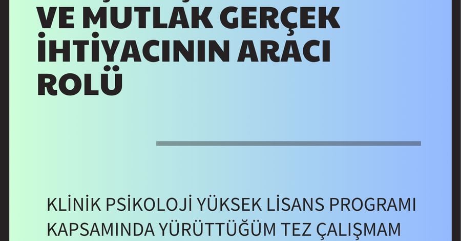 Ben Psikolog Sinem İrmak. Klinik Psikoloji yüksek lisans programı kapsamında yürüttüğüm tez çalışmam için 18 yaş üstü katılımcılara ihtiyaç duymaktayım. Katılım göstermeniz beni çok memnun edecek ve aynı zamanda programı başarıyla bitirmeme katkı sağlayacaktır.