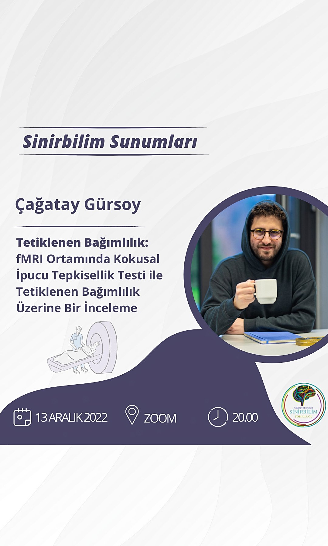 13 Aralık 2022 Salı günü "Tetiklenen Bağımlılık: fMRI ortamında Kokusal İpucu Tepkisellik Testi ile Tetiklenen Bağımlılık Üzerine Bir İnceleme" etkinliğimize hepinizi bekliyoruz!