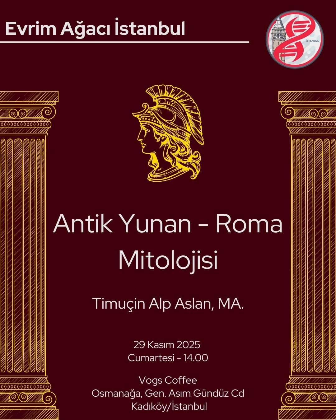 Evrim Ağacı Antik Yunan ve Roma Mitolojisi etkinliği 29 Kasım 2025 tarihinde saat 14.00’da başlayacaktır.