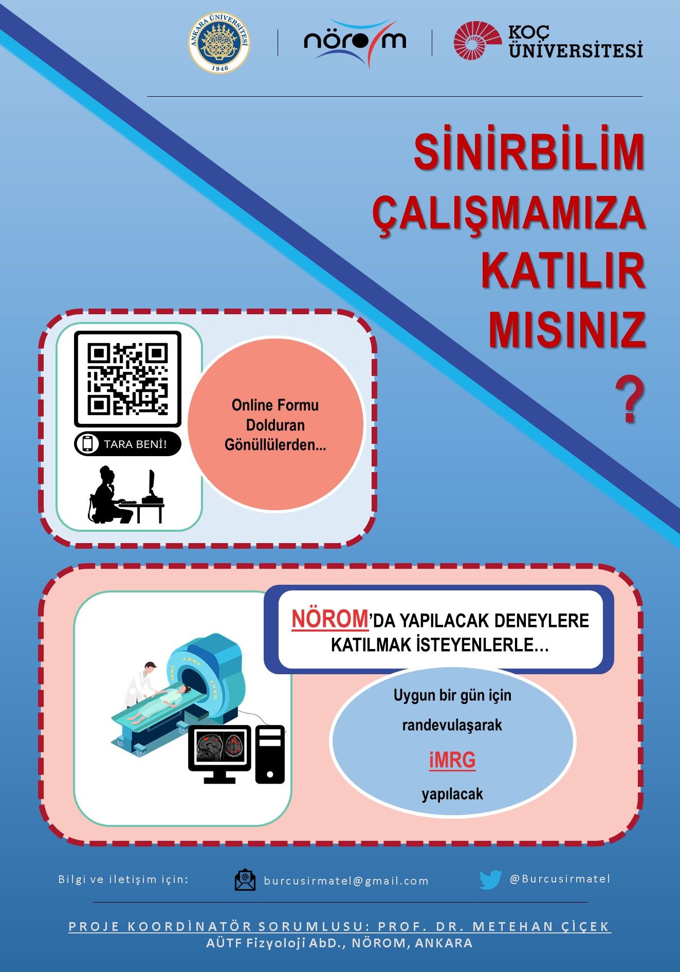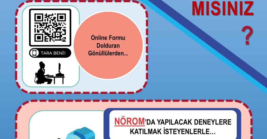 Ankara NÖROM'da gerçekleştirilecek TÜBİTAK destekli çalışmamıza gönüllü katılımcı arıyoruz. Çalışmamıza katılmak ister misiniz? Aşağıdaki linke tıklayarak çalışmanın ilk aşaması olan anketi doldurabilirsiniz.