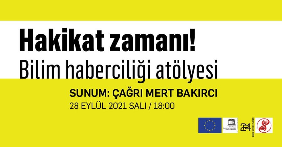 Bilim haberciliği atölyesi çevrimiçi popüler bilim dergisi Evrim Ağacı’ndan Çağrı Mert Bakırcı tarafından Salı 28 Eylül akşamı saat 18.00 - 20.00 arasında gerçekleştirilecek.