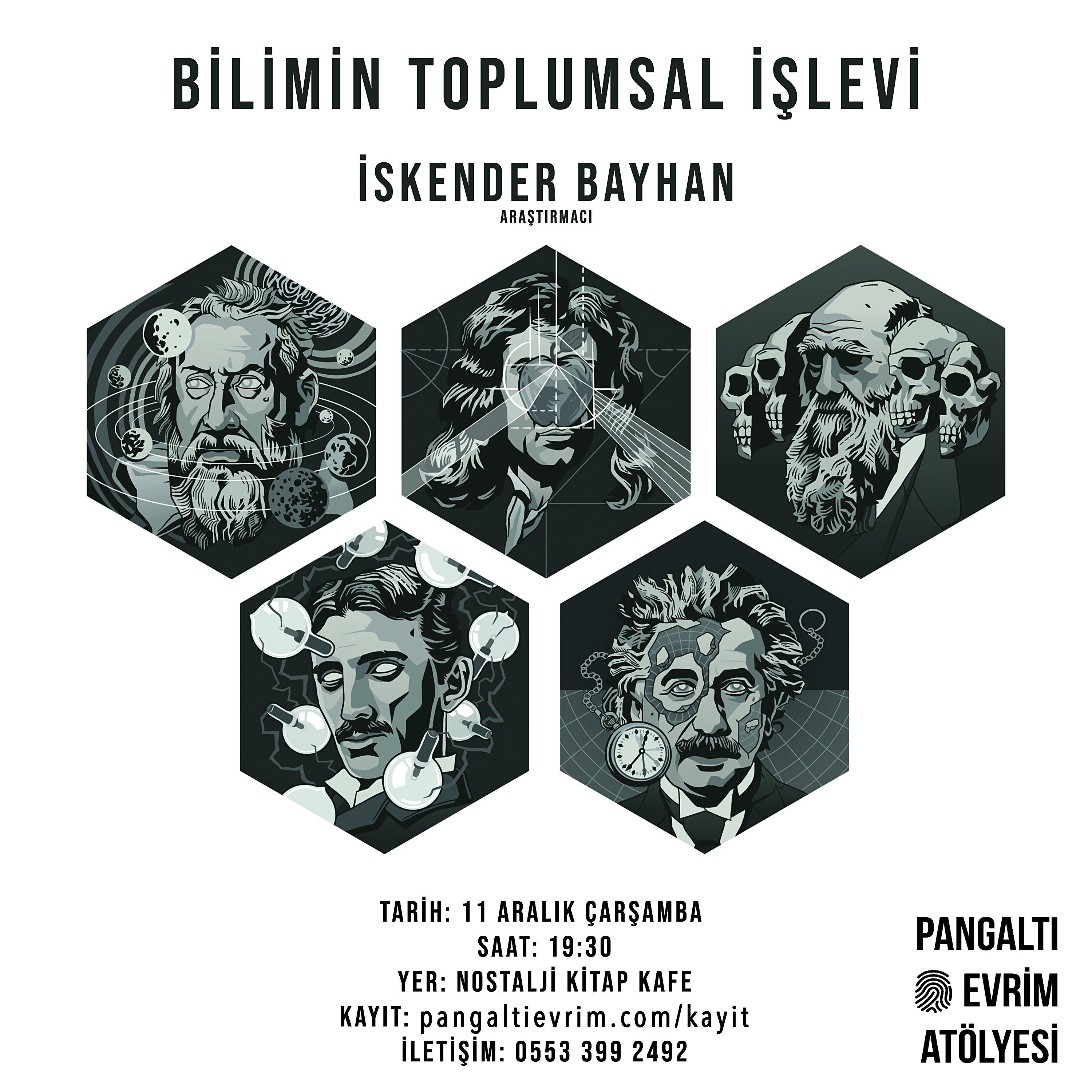 Merhabalar, bu etkinliği J. D. Bernal'ın Bilimin Toplumsal İşlevi kitabından referans ile planladık. İskender Bayhan'ın aktarımı ile bilim alanındaki mücadelenin tarihinden, bu tarih akışına göre iki sınıfın (işçi sınıfı ile burjuvazinin) sınıfsal çıkarlarıyla dünya görüşünün bilim üzerindeki etkisinin hangi yönde olduğu; bilime hangi toplumsal işlevlerin yüklendiği; bilimin nasıl teşvik edildiği ve bilimsel sorunları çözmekle uğraşan bilim insanlarına nasıl yardımcı olunduğu, bilimde hangi değer ve geleneklerin egemen kılınmaya çalışıldığı vb. konularda açık bir kıyaslama imkânı bulabileceğimizi düşünüyoruz. Etkinliğimiz ücretsiz, kayıtlıdır. www.pangaltievrim.com/kayit
