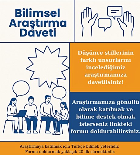 Düşünce stillerinin farklı unsurlarını incelediğimiz araştırma için gönüllü katılımcılar arıyoruz.