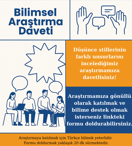 Düşünce stillerinin farklı unsurlarını incelediğimiz araştırma için gönüllü katılımcılar arıyoruz.