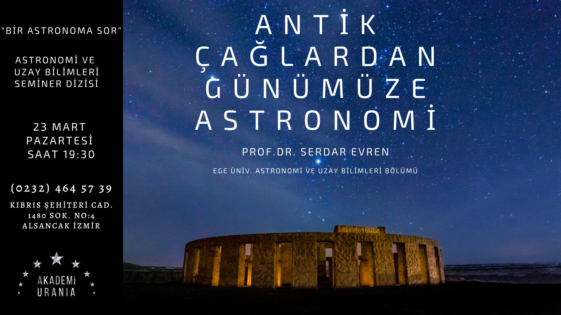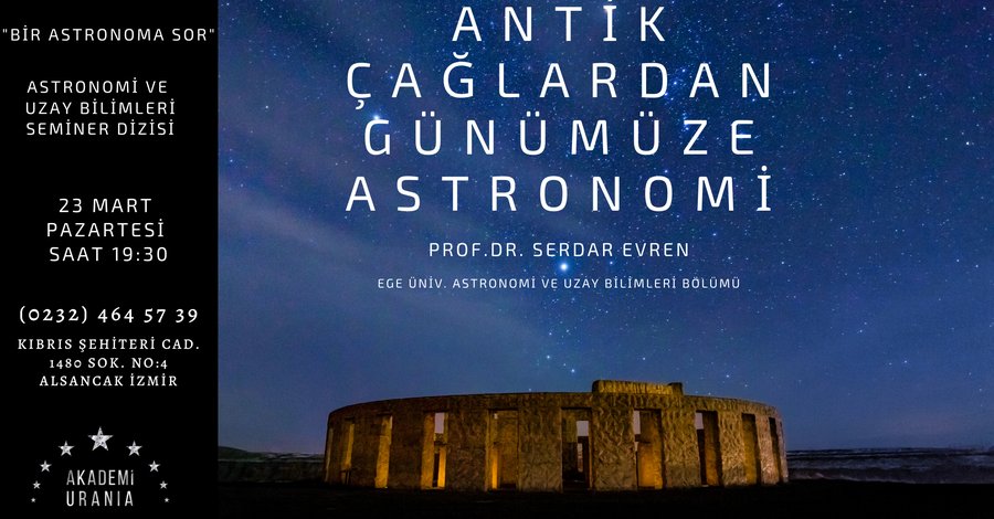 "Antik Çağlardan Günümüze Astronomi" başlıklı bu ilk seminerimizde yıldızların insanlık tarihinde bıraktığı en parlak izleri takip edeceğiz.