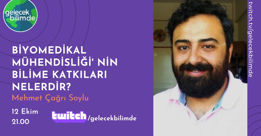 12 Ekim Salı günü saat 21.00’de Twitch kanalımızda sizlerle birlikteyiz. Yayıncılarımızdan Umut Taha Çapanoğlu ve konuğumuz Dr. Mehmet Çağrı Soylu ile Biyomedikal Mühendisliği'nin bilime olan katkıları hakkında söyleşi yapacağımız yayınımıza hepinizi bekliyoruz. Bilimle Kalın! https://www.twitch.tv/gelecekbilimde