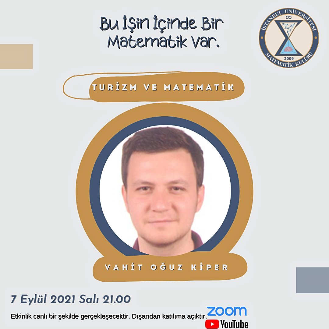 7 Eylül Salı günü saat 21.00’de Oğuz Vahip Kiper ile Turizm ve Matematik üzerine konuşacağız.