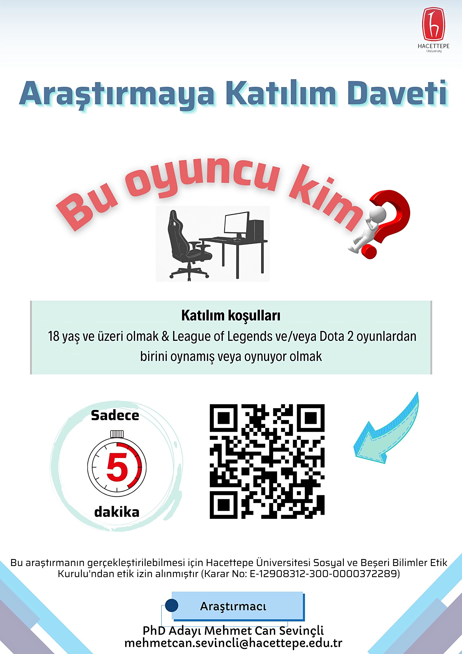 MOBA türü oyunlarda diğer oyunculara yönelik algımızın nasıl şekillendiğini incelemek amacıyla “Bu Oyuncu Kim?” isimli yaklaşık 5 dakika süren bir araştırma yürütüyorum.