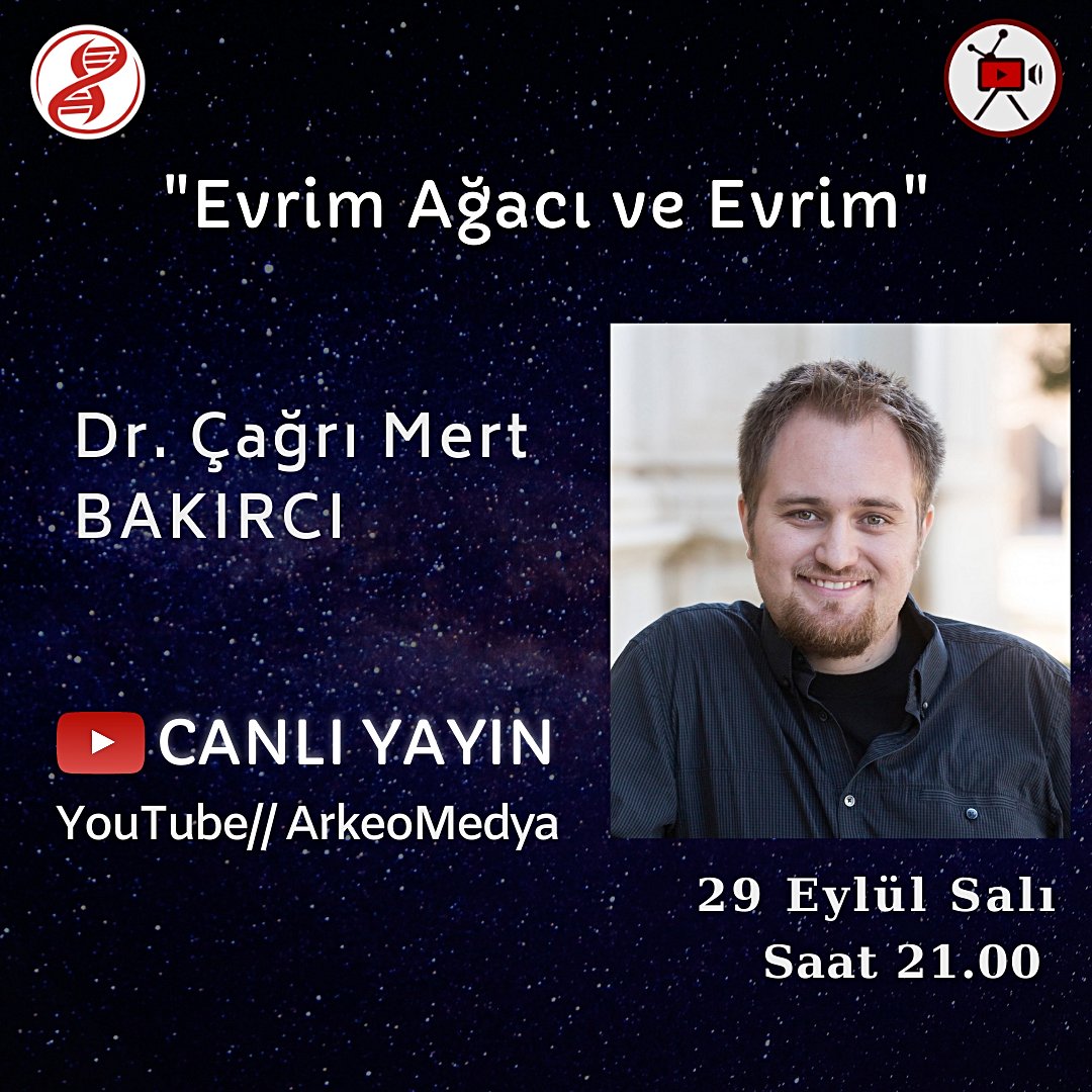 Evrim Ağacı kurucusu Dr. Çağrı Mert BAKIRCI ile bugün saat 21.00' da, Youtube//ArkeoMedya kanalında canlı yayında olacağız.