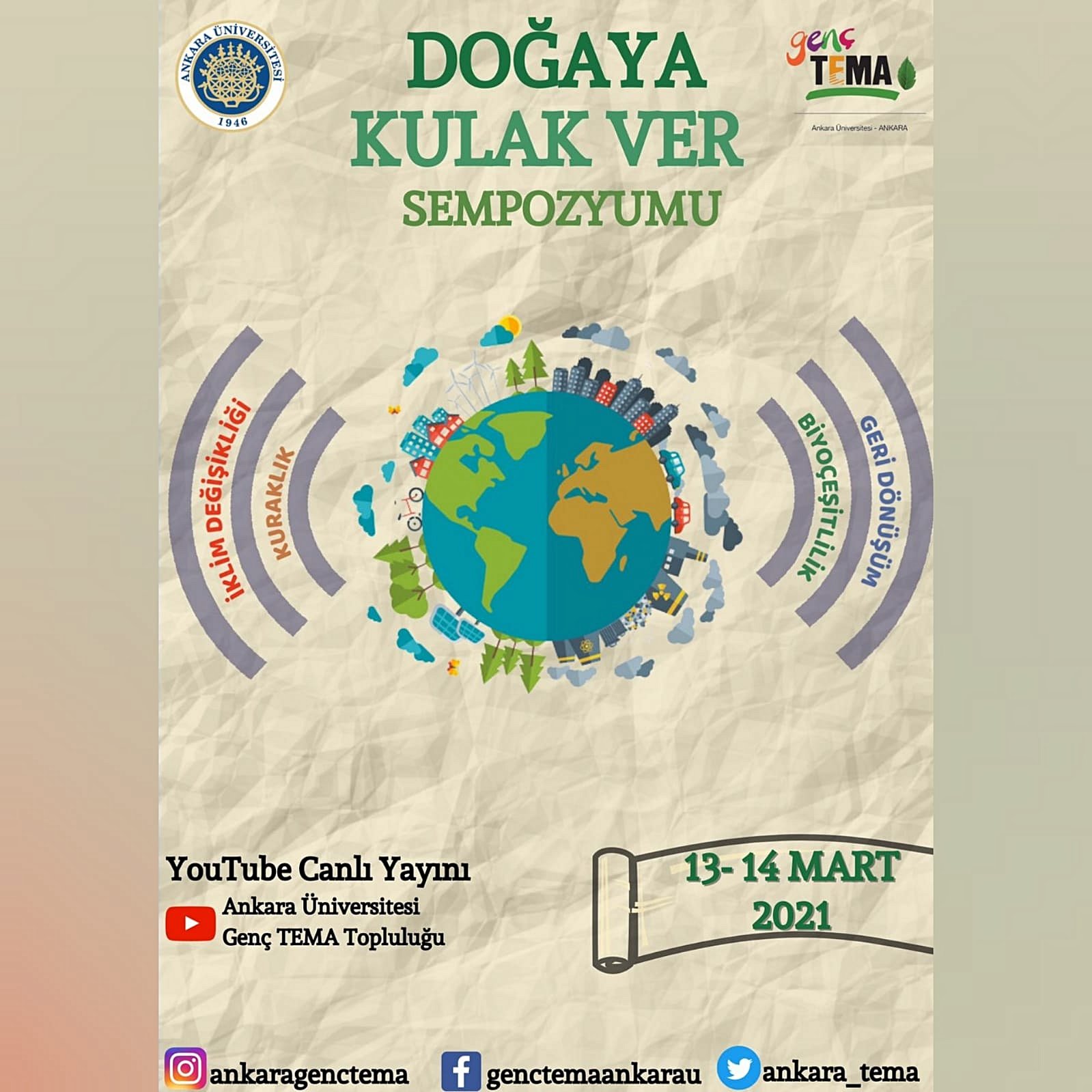 Ankara Üniversitesi Genç TEMA Topluluğu olarak düzenleyeceğimiz “Doğaya Kulak Ver” isimli sempozyumumuzda siz doğaseverleri de aramızda görmekten mutluluk duyarız.