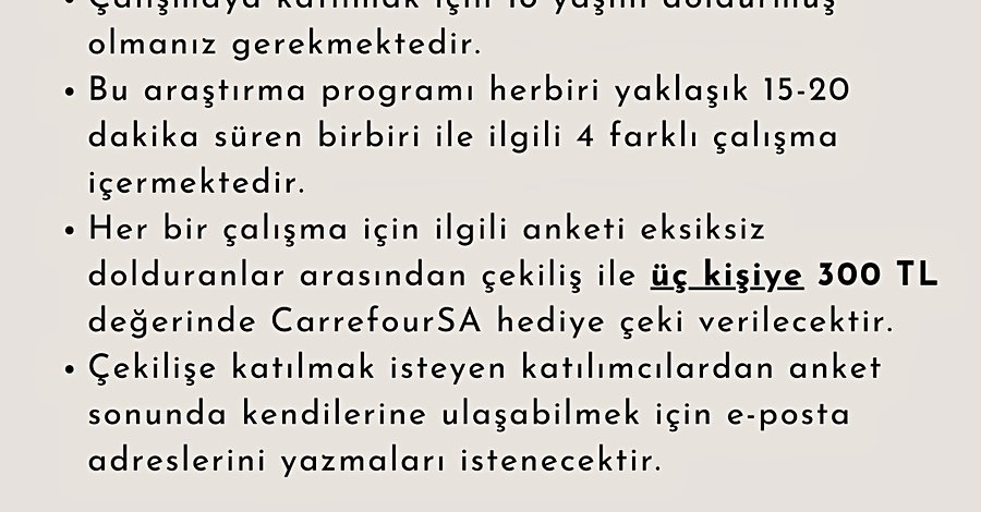 Bu bilimsel araştırmaya olan içtenlikle verdiğiniz cevaplar ve katkılarınızdan dolayı şimdiden teşekkür ederiz!