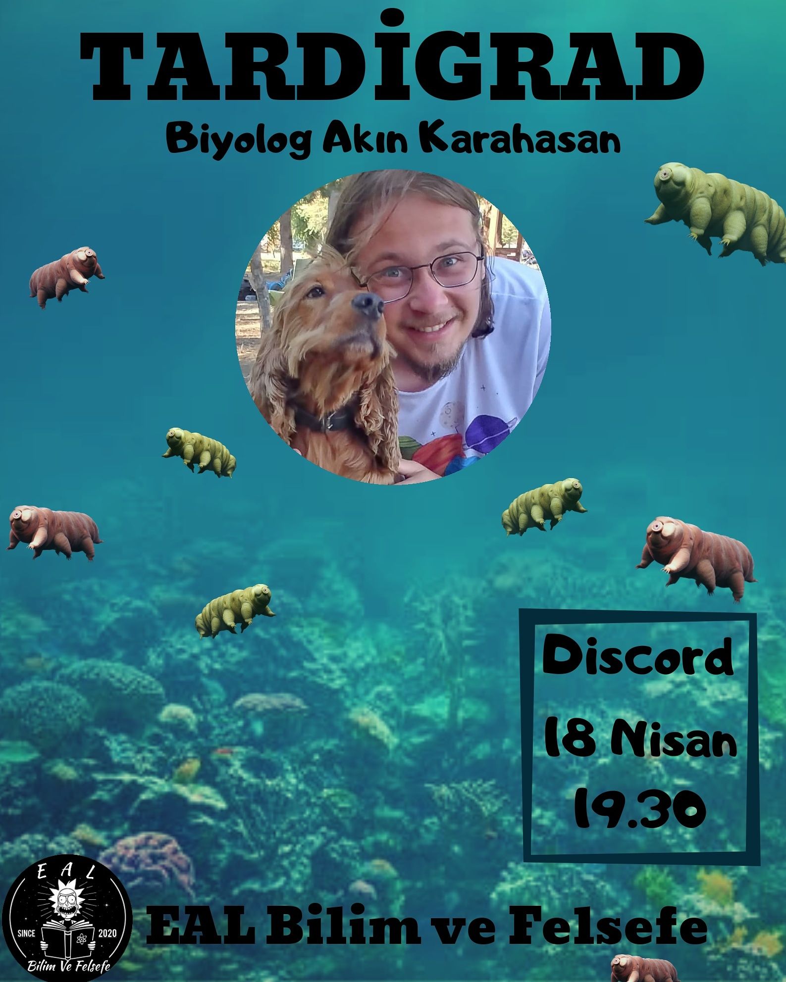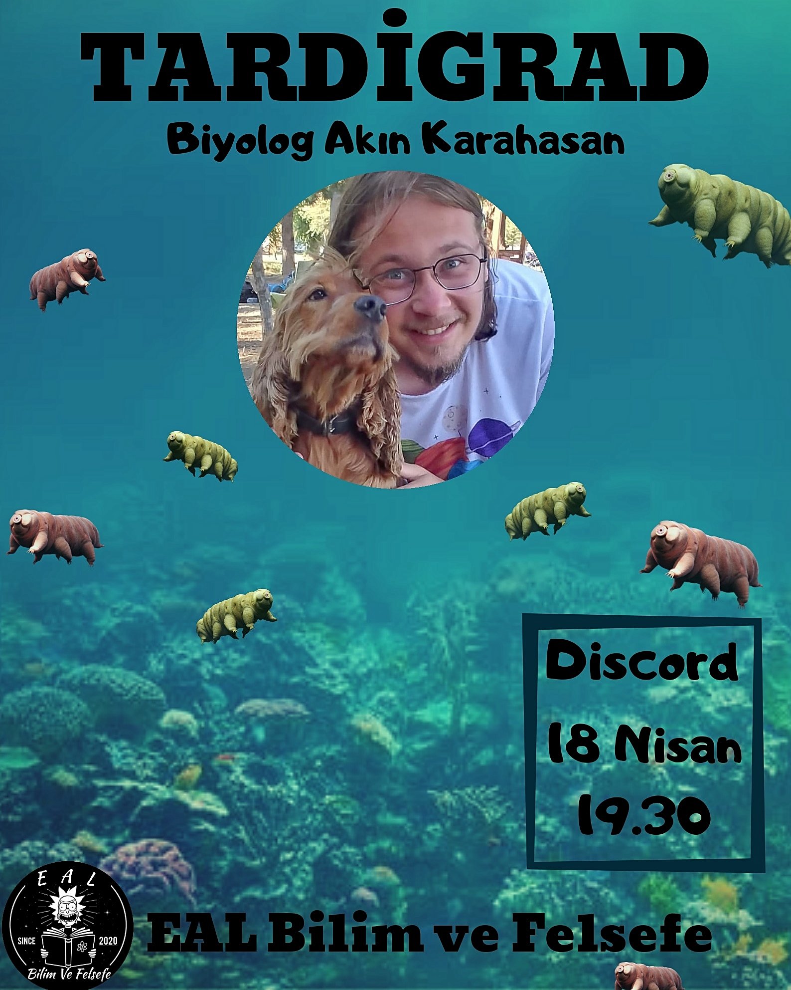 18 Nisan Cumartesi günü, 19.30'da Akın Karahasan ile discord üzerinden, tardigradlar hakkında etkinlik yapıyoruz.